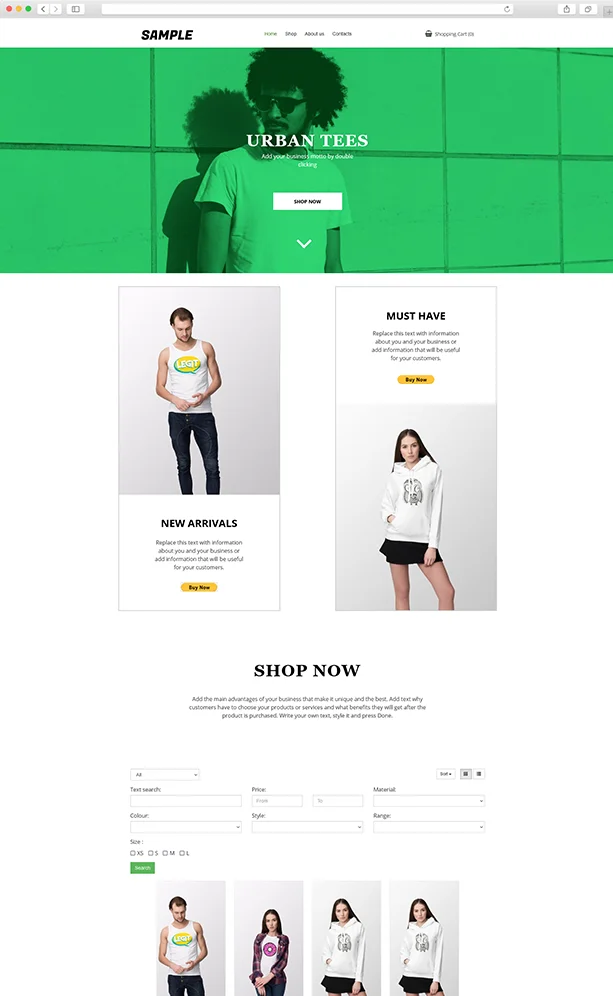 Создание сайта онлайн с понятным интерфейсом и всеми функциями магазина: каталогом, корзиной, страницей оплаты.